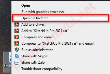 Ra màn hình chính > click chuột phải vào biểu tượng của Sketchup Pro 2024 > Open file location