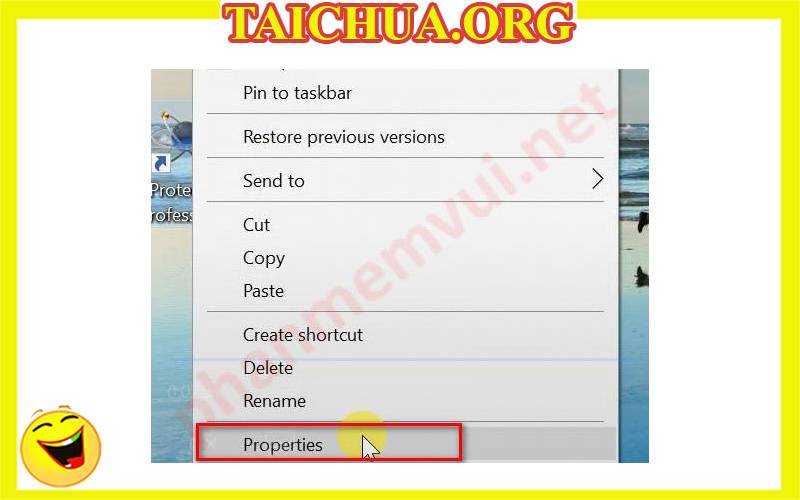 Ra màn hình desktop > Click chuột phải vào biểu tượng phần mềm Proteus > Properties.