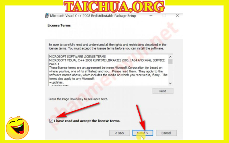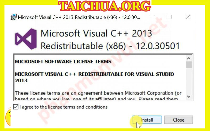 Tick vào ô I agree… và Install.