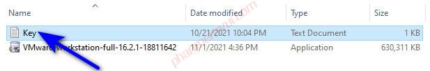 Trở về thư mục vừa giải nén ở bước 1 > mở file Key lên