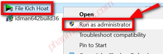 Nhấp chuột phải vào tệp File Kích Hoạt như hình bên dưới, rồi chọn Run as administrator.