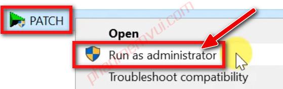 Nhấp chuột phải vào tệp PATCH như hình bên dưới, rồi chọn Run as administrator.