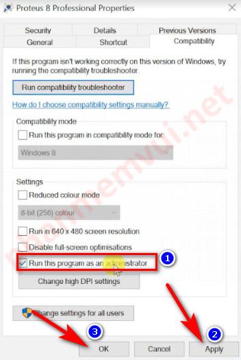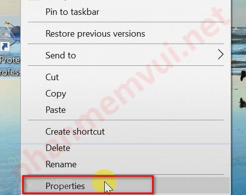 Ra màn hình desktop > Click chuột phải vào biểu tượng phần mềm Proteus > Properties.