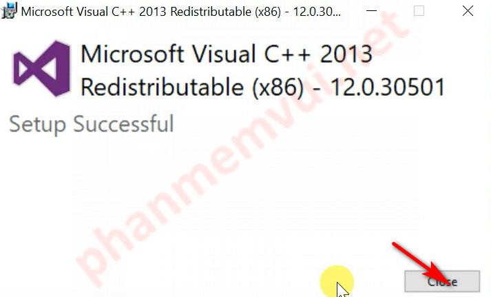 Khi quá trình cài đặt hoàn tất thì bạn hãy nhấn Close.