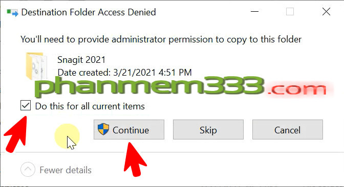 Tích chọn vào ô Do this for all current items và bấm nút Continue.