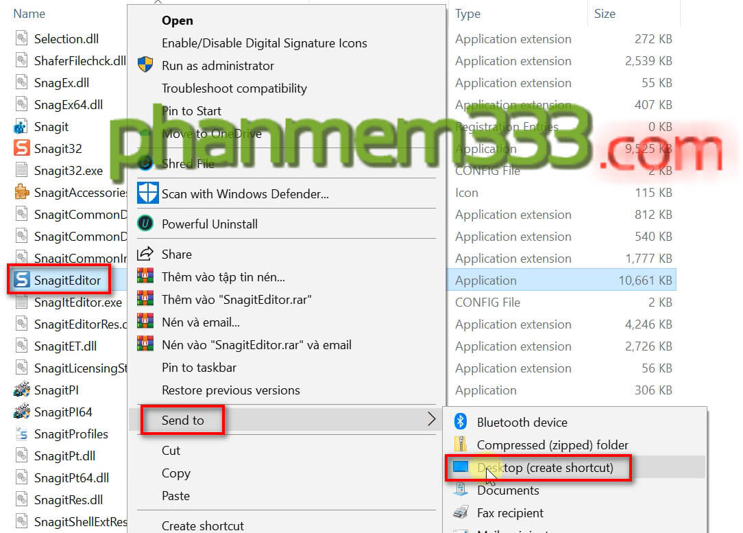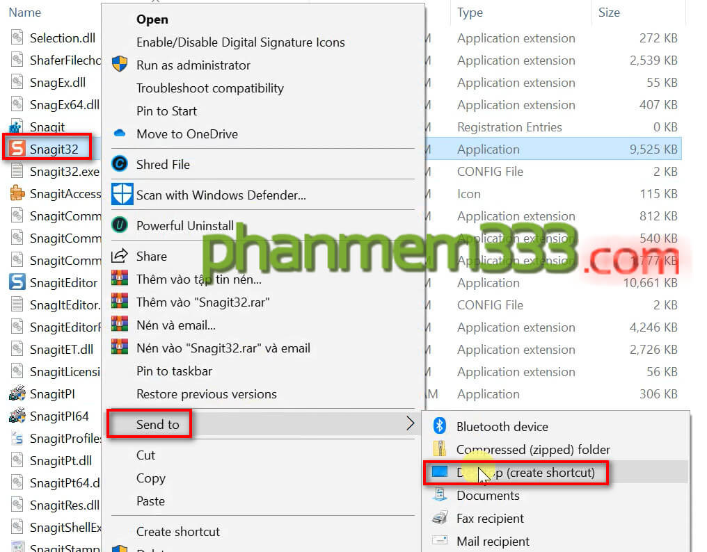 Giờ bạn có thể đưa icon phần mềm Snagit 2025 ra màn hình Desktop để dễ sử dụng theo hướng dẫn như bên dưới.
