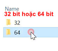 Chọn đúng vào thư mục 32 hoặc 64 bit tương ứng với cấu hình máy tính của bạn. Ở đây mình dùng máy tính 64 bit nên mình chọn vào thư mục 64 bit nhé.