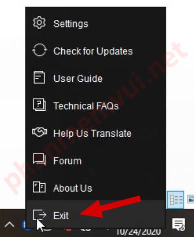 Chọn Exit để thoát hoàn toàn phần mềm.